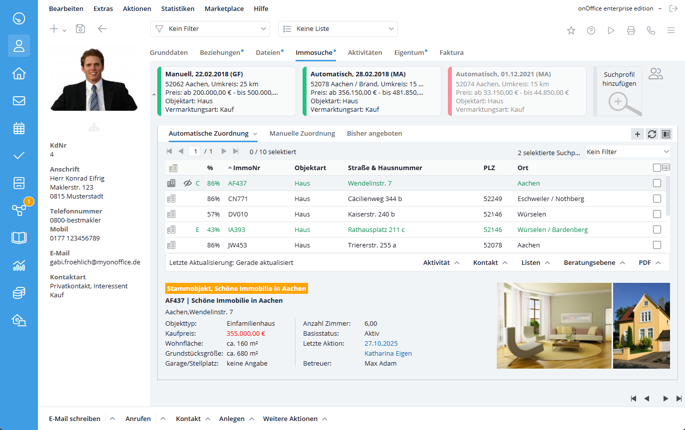 Beachten Sie, dass bei automatischer Zuordnung nur Immobilien mit dem Vermarktungsstatus „offen“ angezeigt werden.