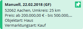 Sie befinden sich hier: Home / Module / Adressen / Adressdetailansicht / Immosuche - Überblick