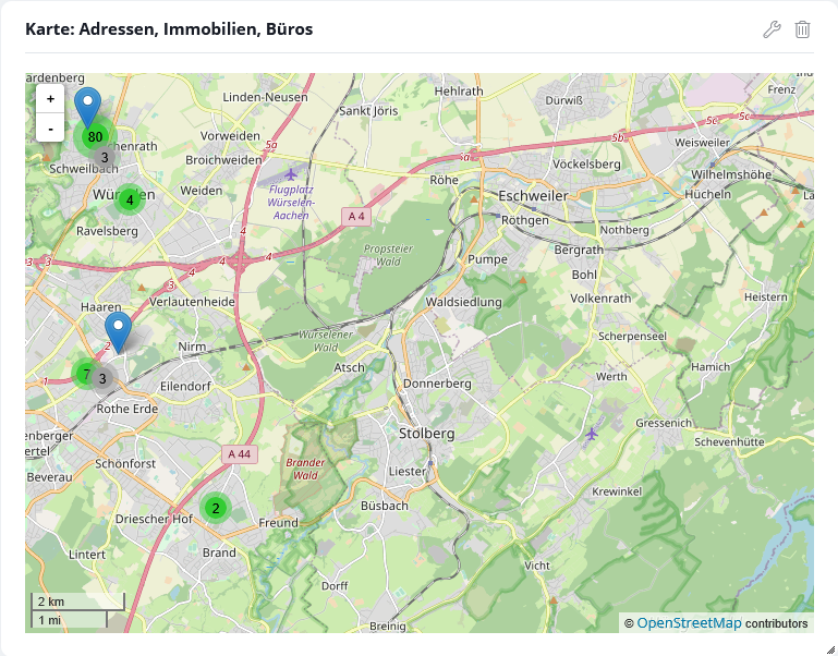 Para los inmuebles , puede mostrar los detalles de los distintos estados o estados ampliados (Estado2) y restringirlos mediante un filtro de inmuebles. Tienes la posibilidad de cambiar el color de los distintos estados en la administración, tal como se describe en el cuadro de expertos.