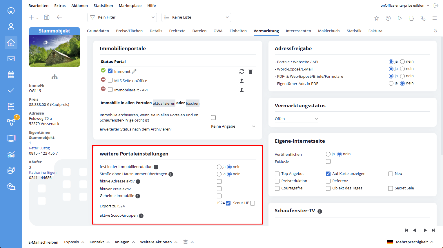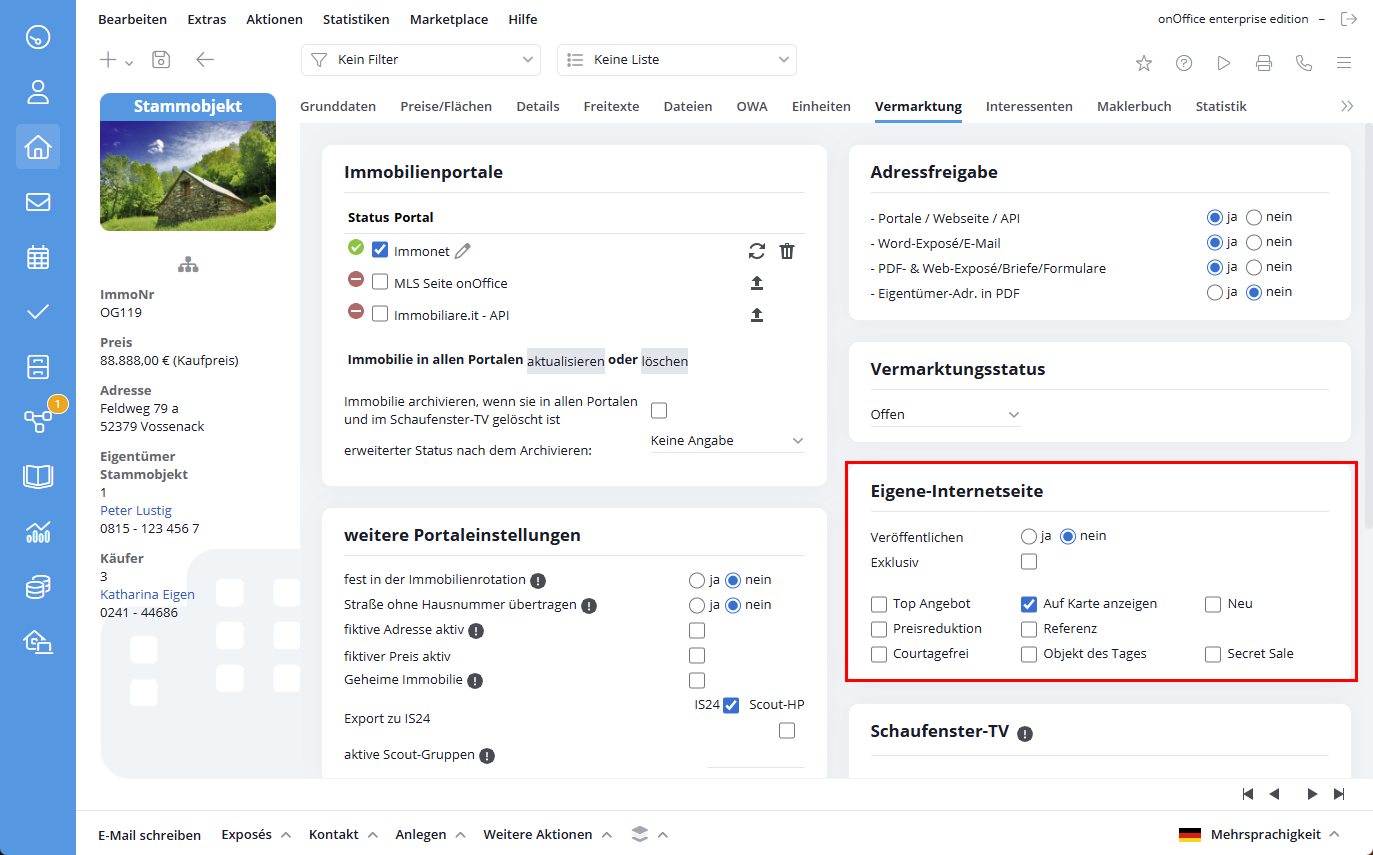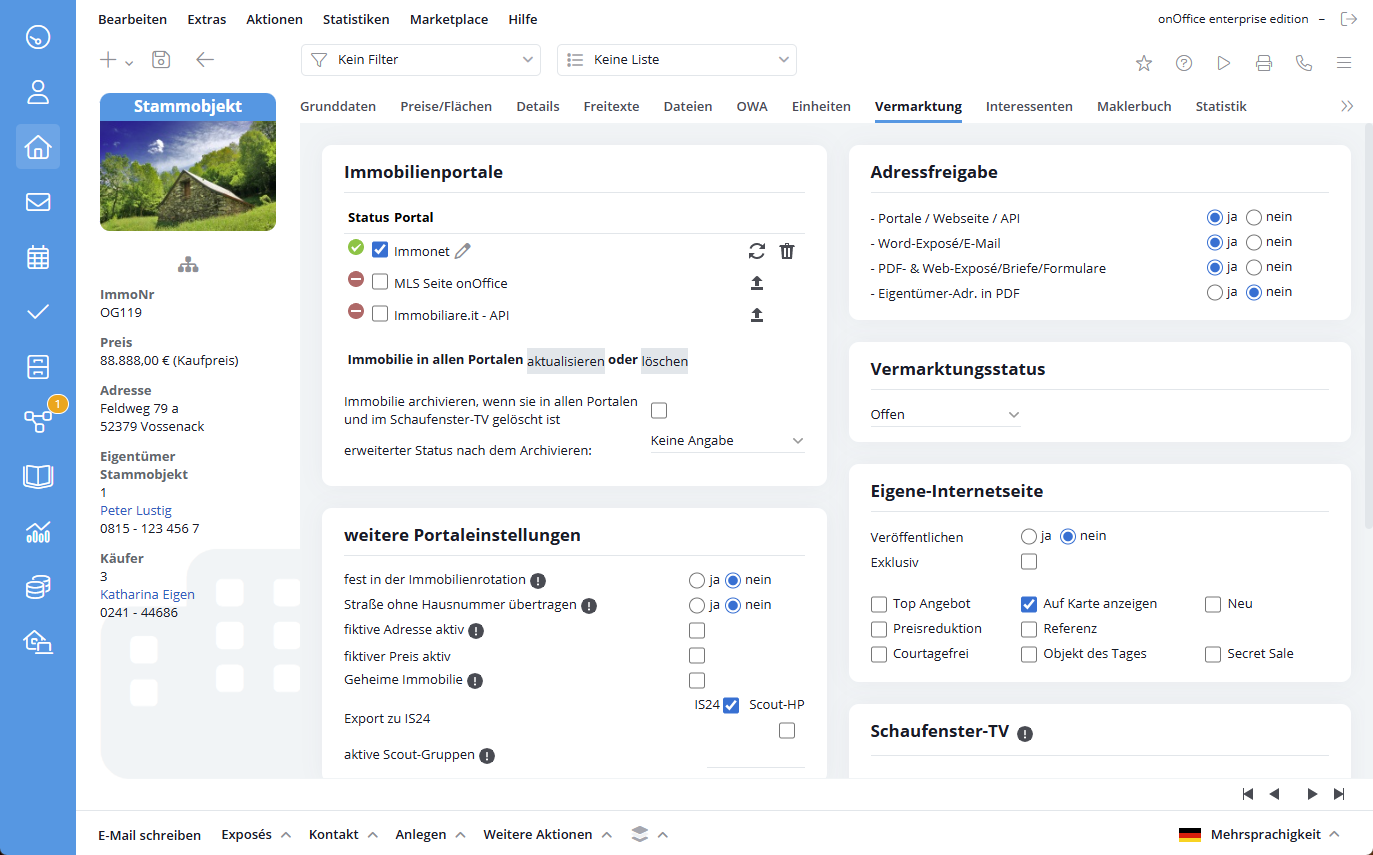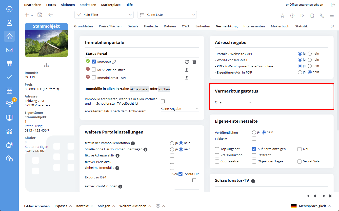 Sie befinden sich hier: Home / Module / Immobilien / Immobiliendetailansicht / Vermarktung
