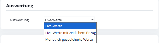 - Nur bei der Auswertung von Live-Werten mit zeitlichem Bezug und der Auswertung von Aktivitäten