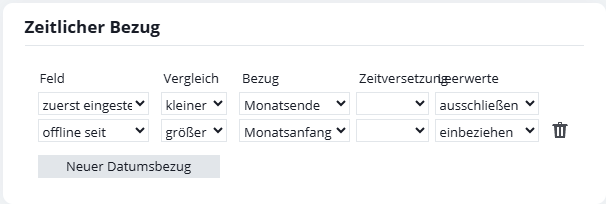 - Beispiel: Bei einem Zeitraum von einem Monat, der um 2 nach hinten verschoben wird, wird der vorletzte Monat dargestellt.