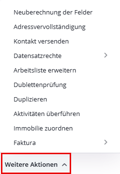Con esta función puedes enviar los datos de contacto del registro seleccionado como un archivo adjunto de correo electrónico. El editor de correo se abre automáticamente y los datos del contacto se adjuntan como un archivo «.vcf». El destinatario puede entonces añadir este archivo a su libreta de contactos (por ejemplo, Outlook, iPhone o Android).