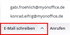 Esta función permite redactar un correo electrónicodesde cualquier punto del registro de contactos. Si hay varios contactos de correo electrónico almacenados, puedes seleccionar el contacto de correo electrónico deseado mediante el símbolo de la flecha situado junto a «Escribir email».