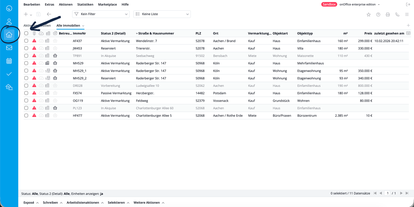 1. Gehen Sie im linken Menü zu Ihren Immobilien.