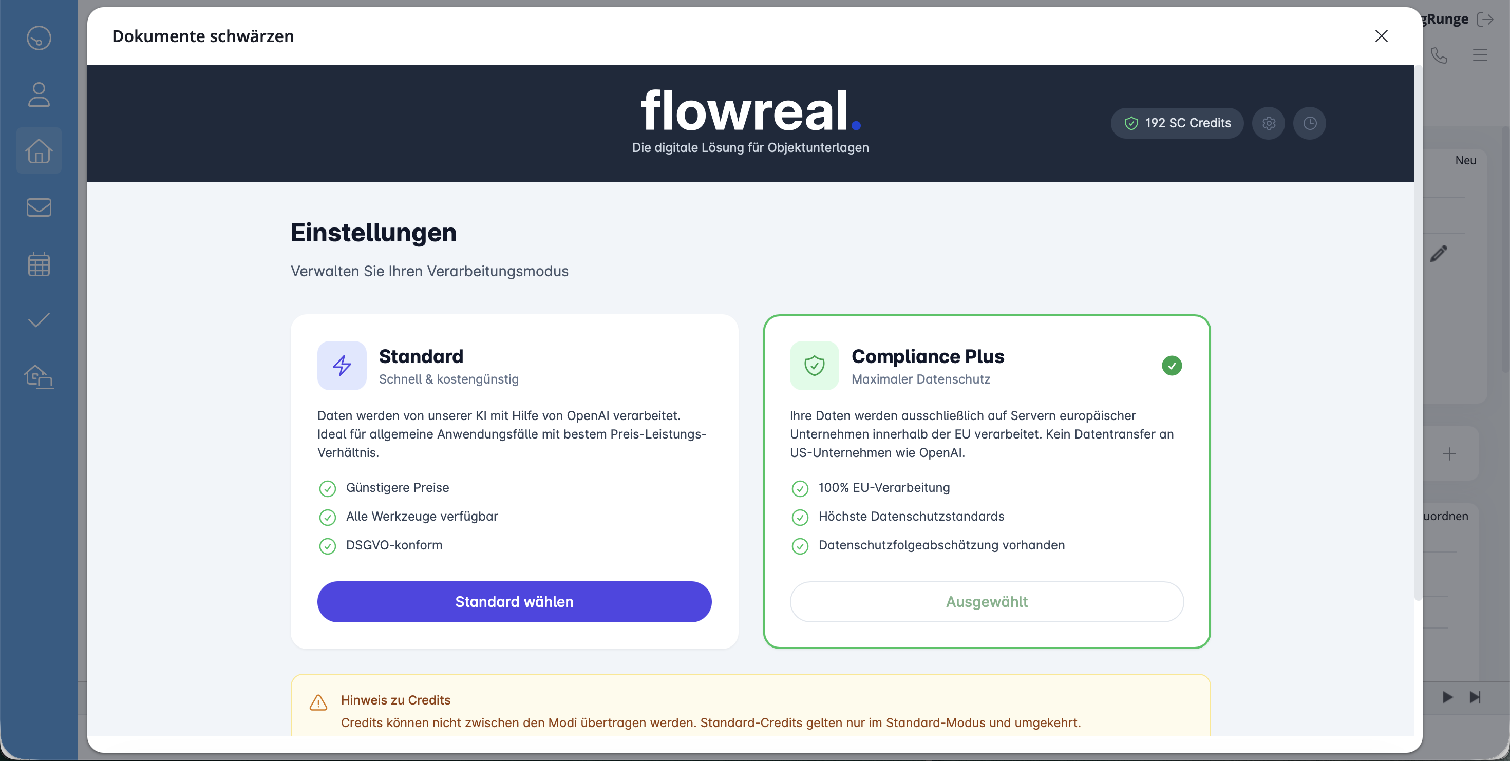 4. Wählen Sie zwischen dem Standard Modus und dem Compliance+ aus.