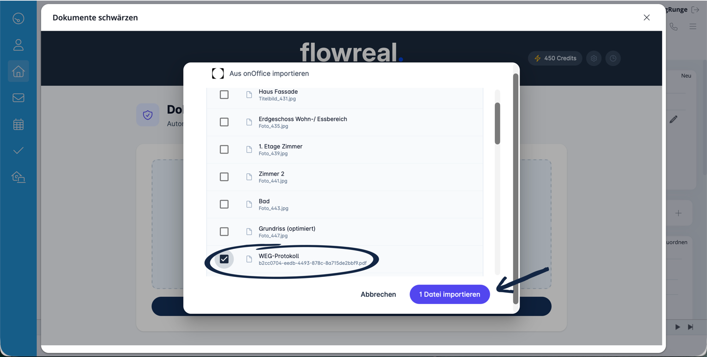 6. Wählen Sie alle zu schwärzenden Dokumente aus und importieren Sie diese.