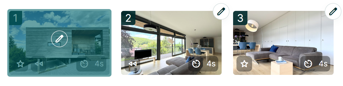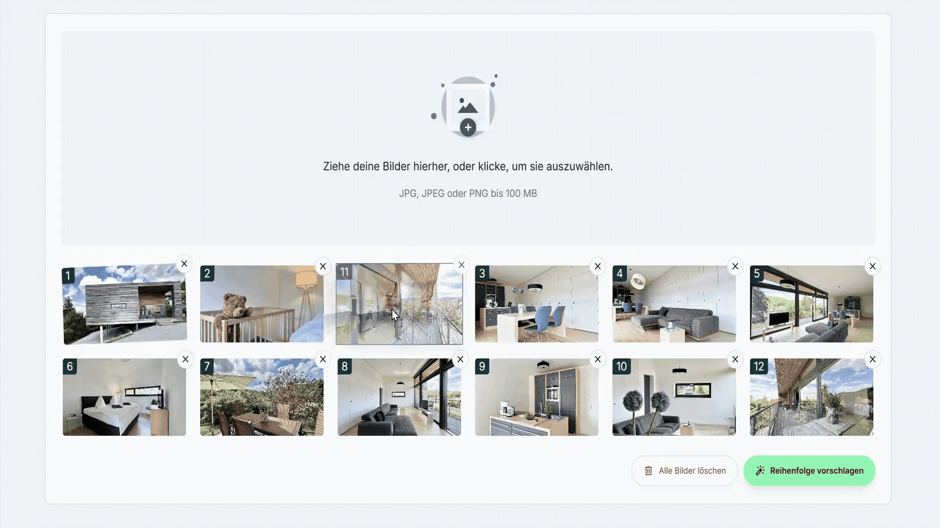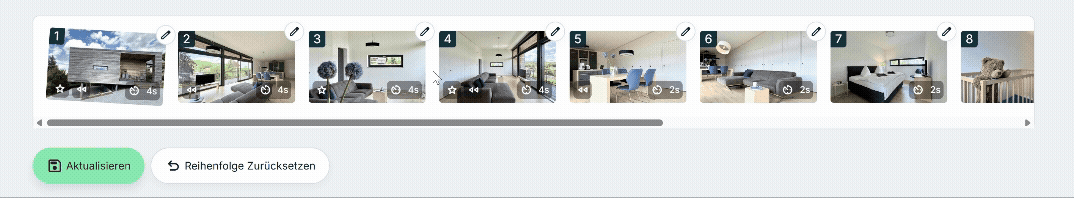 - Manuelle Sortierung: Verschieben Sie die Bilder mit der Maus in die gewünschte Reihenfolge (z. B. chronologischer Rundgang von außen nach innen).