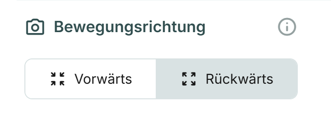 - Bewegungsrichtung: Wechseln Sie zwischen Vorwärts (in den Raum hinein) und Rückwärts (aus dem Raum heraus).