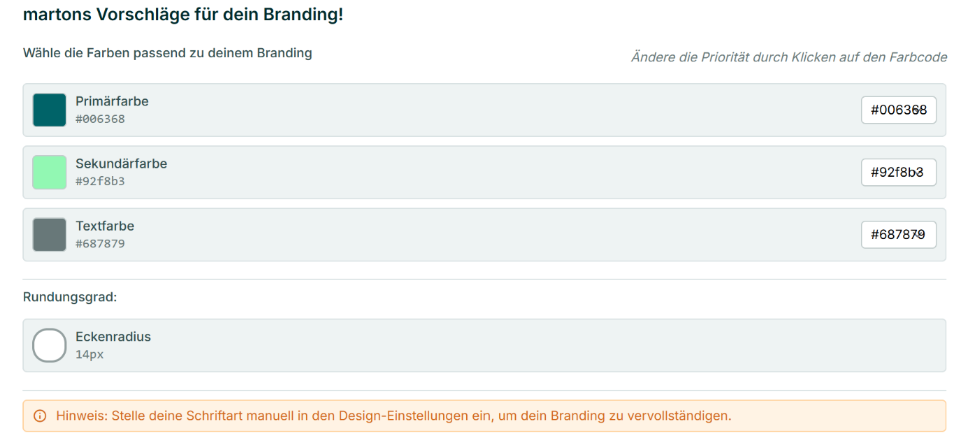 - Primär- & Sekundärfarbe: Leiten sich in der Regel aus Ihrem Logo ab.