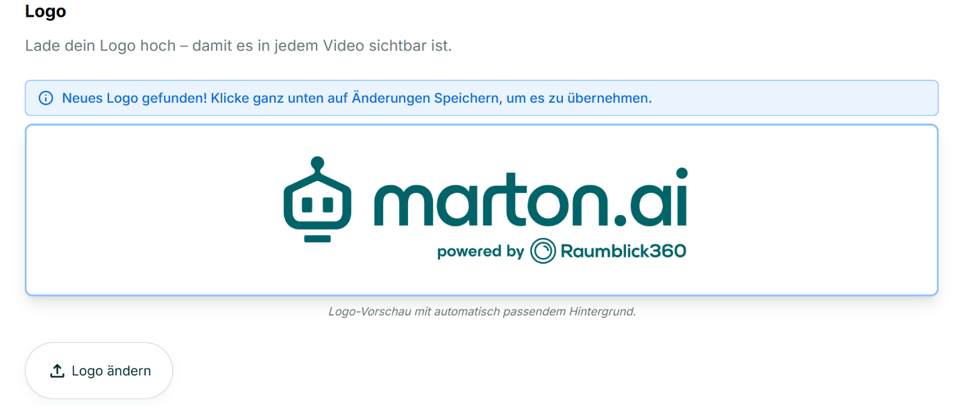 - Manuell: Nutzen Sie die Funktion „Logo ändern“, um Ihre Bilddatei hochzuladen, falls das Feld leer ist oder korrigiert werden muss.