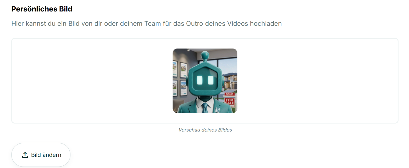 - Anzeige: Das Bild wird nur eingeblendet, wenn Sie später eine Outro-Vorlage wählen, die eine Kontaktkarte beinhaltet. Sie entscheiden somit pro Projekt, ob das Bild sichtbar sein soll.
