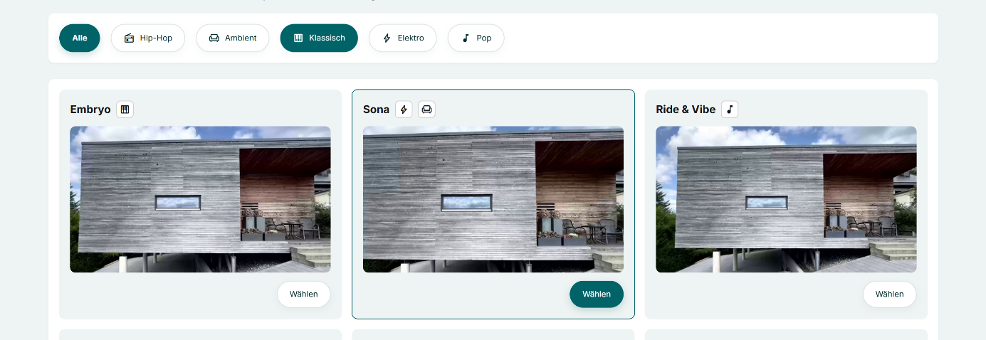 - Ambient: Unaufdringlich und entspannt. Geeignet für Familienhäuser, Wellness-Immobilien oder Naturlagen.